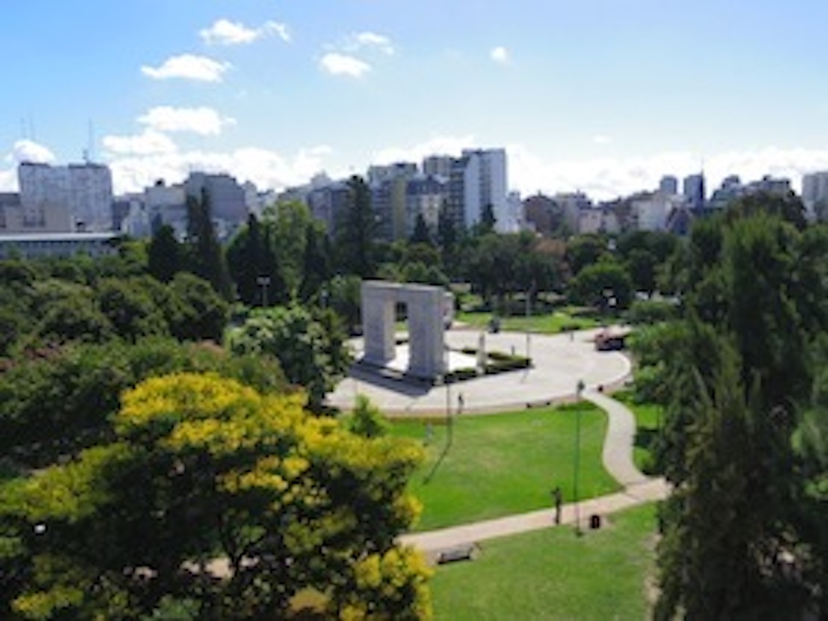 目の前の公園が一望できる。