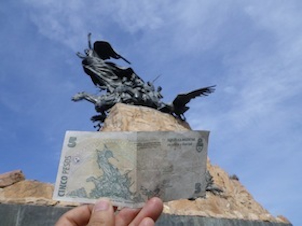 このモニュメント、5ペソ札の裏側のデザインになってる。