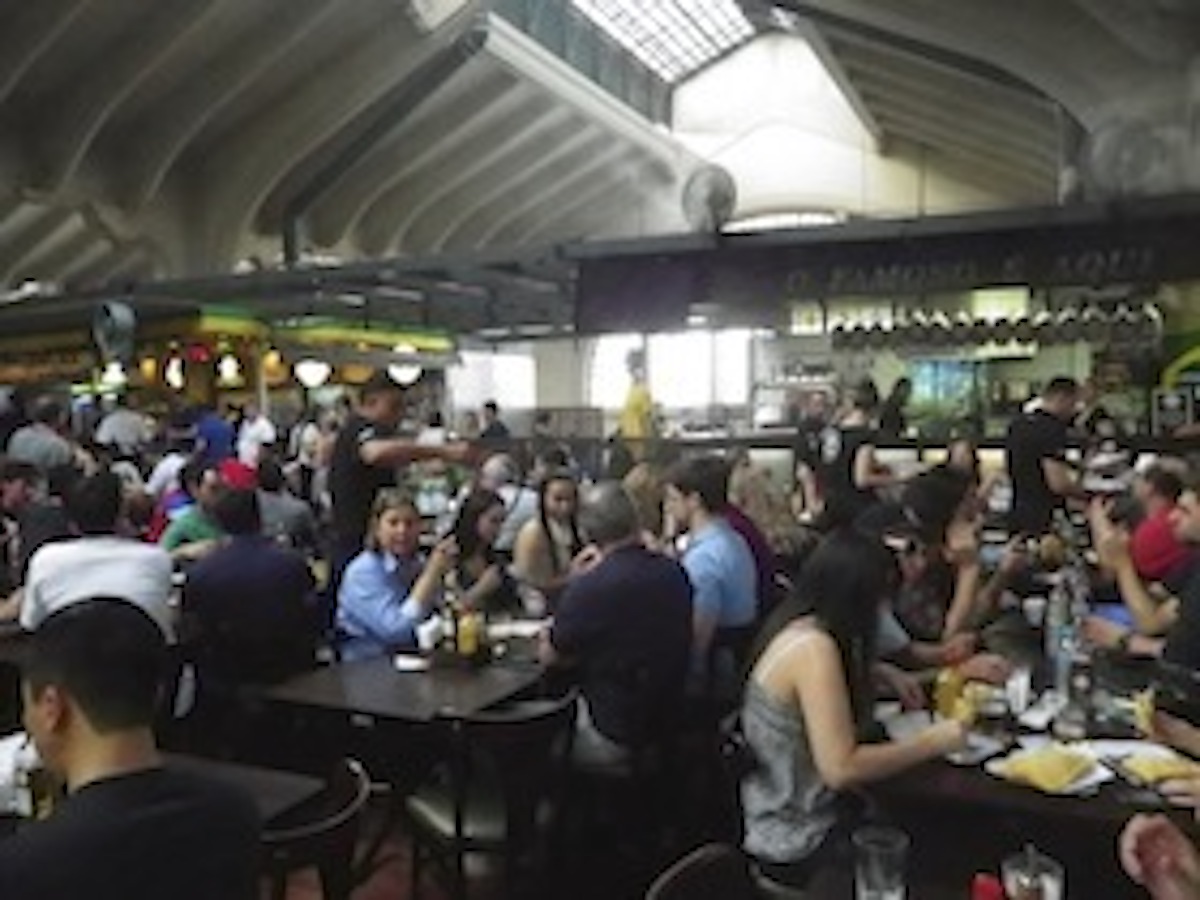 市場の2階にはいくつも店があり、どこもお客が一杯。