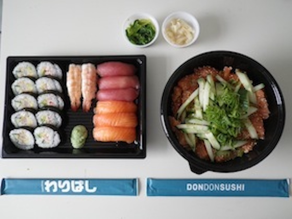 握りと巻きのセットとちらし(シャケ丼?)を買ってみた。