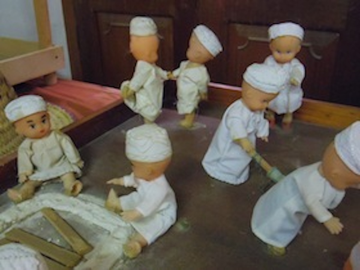 子ども達の遊びをキューピーちゃんもどきの人形で再現してた。