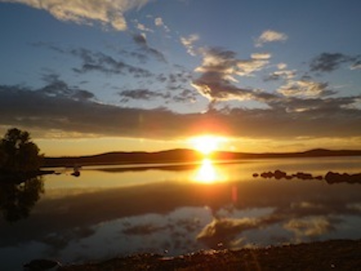 夕陽が沈みそうな湖