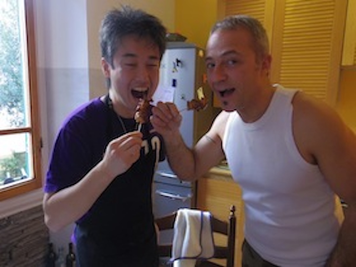 ロレンツォに作り方を教えながら、一緒に日本食を作ってみた。