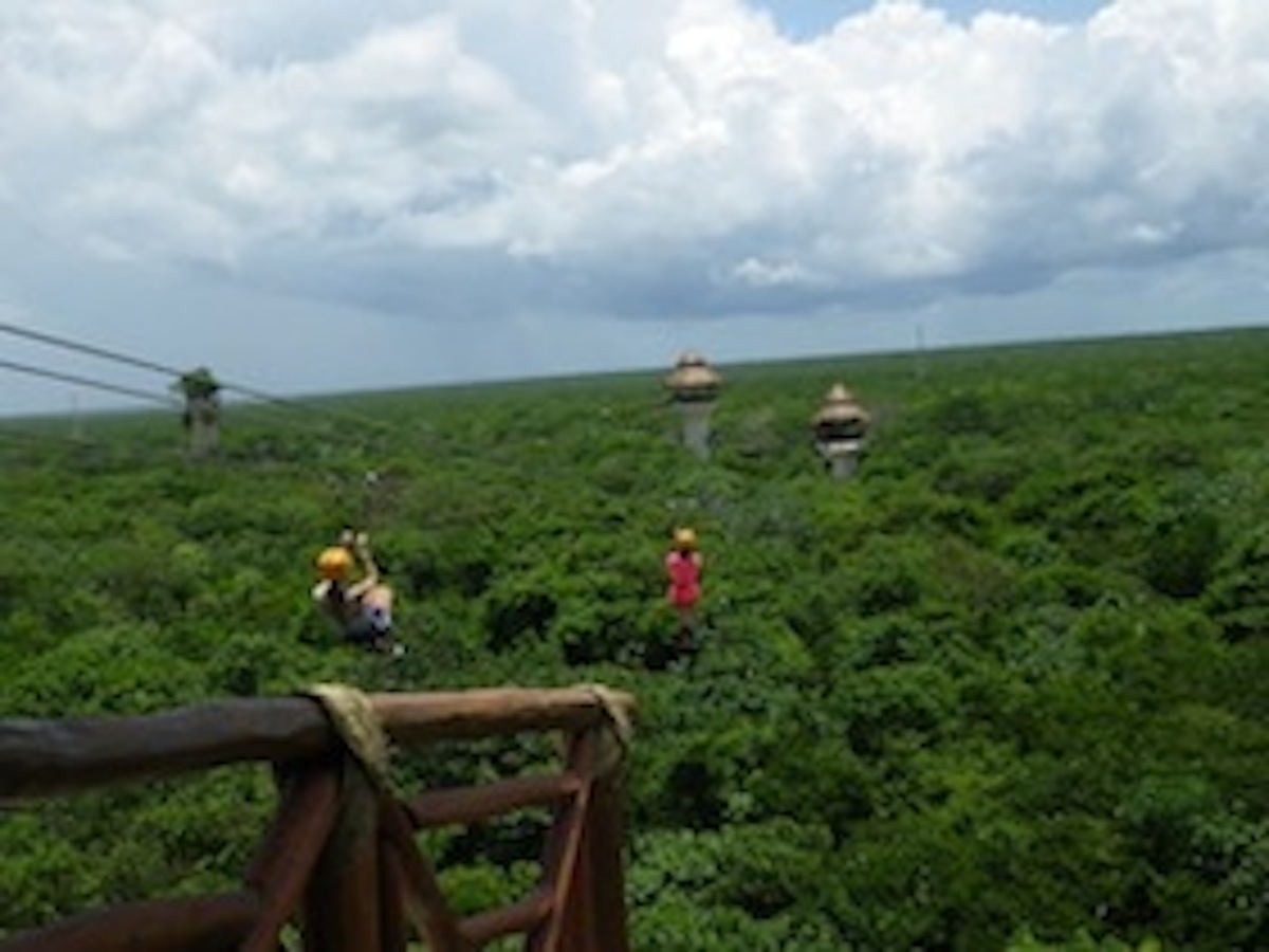 ジャングルの数10メートル上を、ワイヤーをつたってすっ飛んでく。