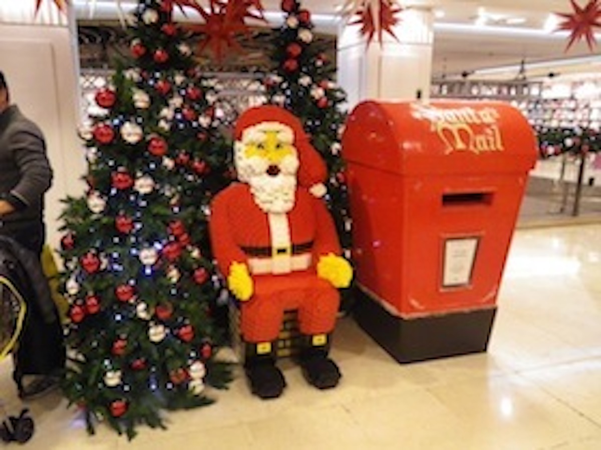 おもちゃ売り場では、ブロックで作られたサンタを発見!